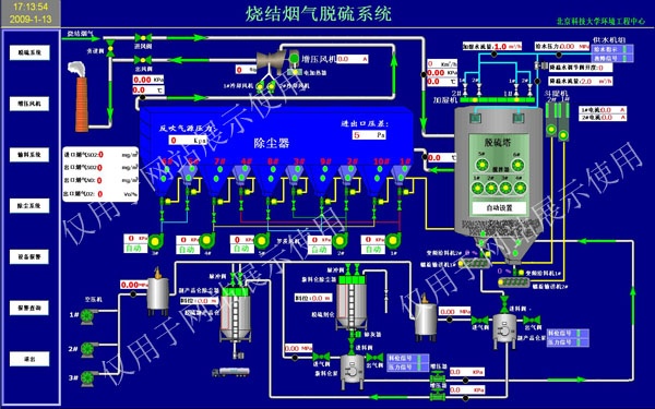 煙氣脫硫控制系統(tǒng)。該系統(tǒng)可根據(jù)企業(yè)不同煙氣溫濕度及二氧化硫氮氧化物等成分不同的實(shí)際工況,通過算法優(yōu)化控制方法,提高脫硫系統(tǒng)的自動(dòng)化程度,在保證脫硫效率的前提下,降低原材料和能源的消耗,降低脫硫系統(tǒng)的運(yùn)行成本。